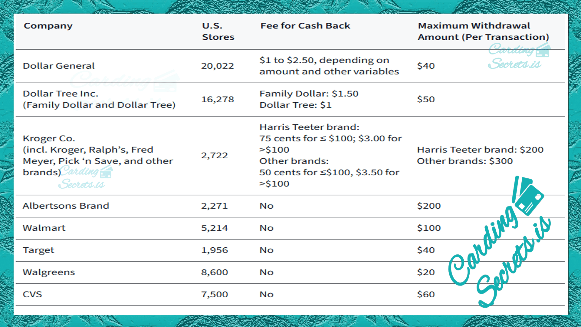 - Choose a retail location: Aim for a retail store with higher maximum withdrawal amount (per transaction). That way you only have to visit a few times, different Stores, to Cashing out the card. It’s also crucial to remain anonymous during this process, so choose a store and area that aligns with your preferences.